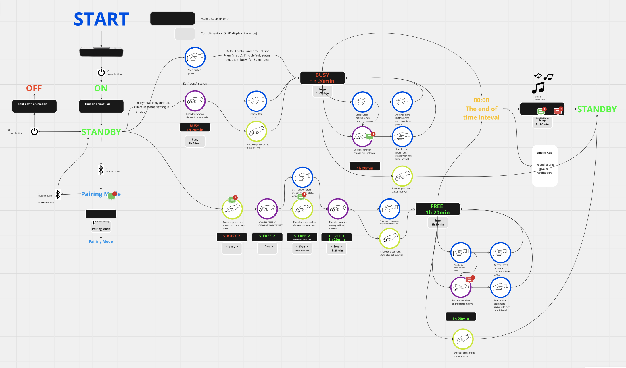 Here’s the map of the first UX prototype with the status display function and Bluetooth on/off.