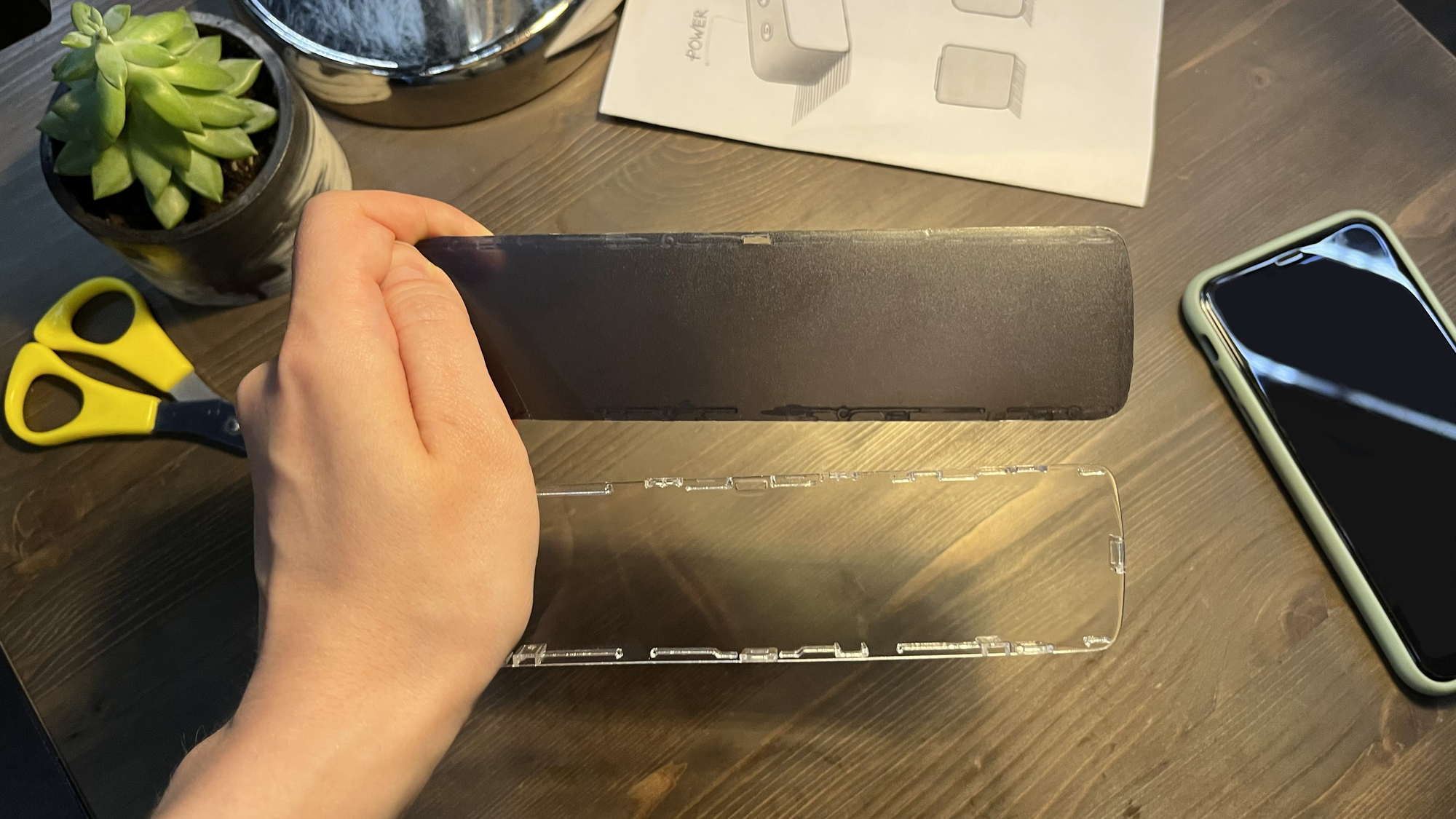 I tried films with different shading and settled on 25% of light transmittance. Since the film was glossy and the casing was matte, I also applied a matte film over the tinting.