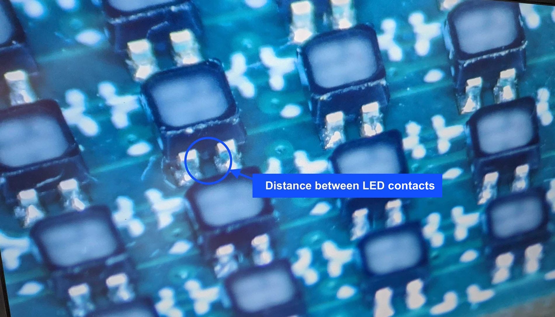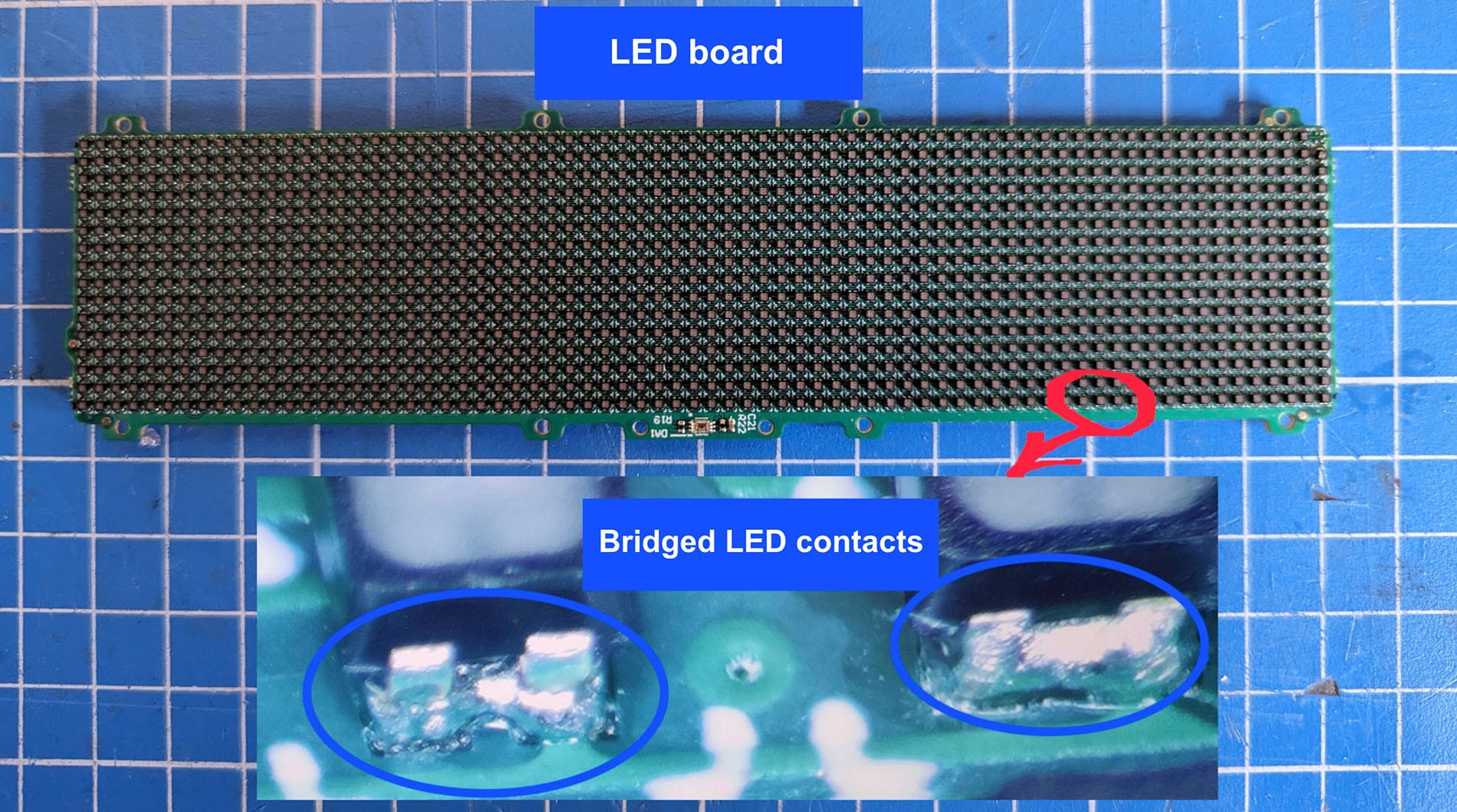 I wasn’t discouraged and removed the bridges between LED contacts manually using a soldering wick.