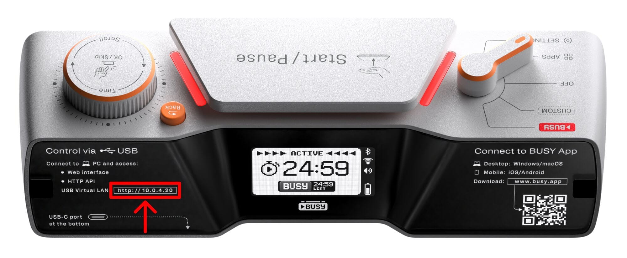 - USB Ethernet — when you connect BUSY Bar to a PC, it appears as a network adapter with a virtual network.