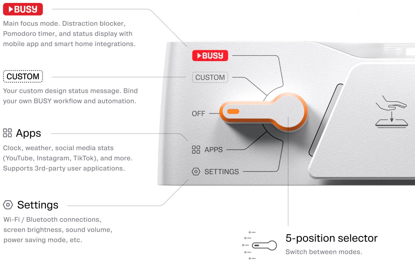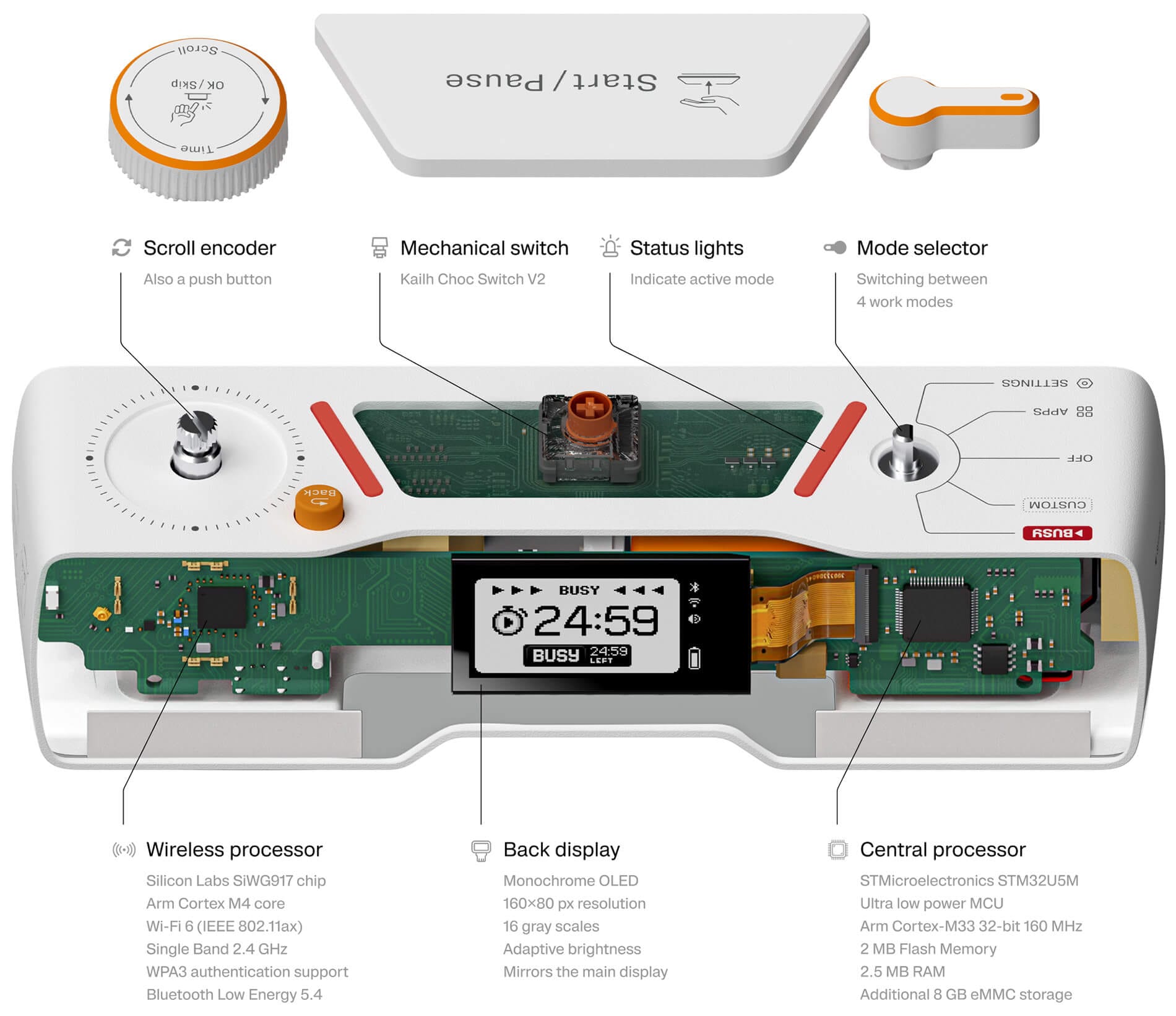 - 8 GB eMMC storage — for storing the BUSY Bar interface’s highly dynamic assets, for a smooth layered UI and 2D effects.