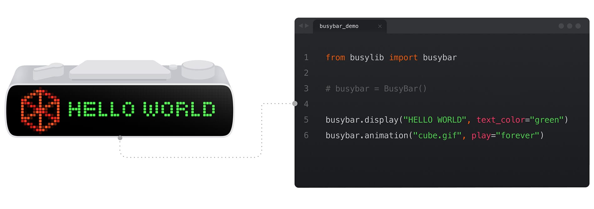We also provide libraries that implement our Open HTTP API, making it easy to integrate BUSY Bar into your JavaScript, Go, or Python apps.