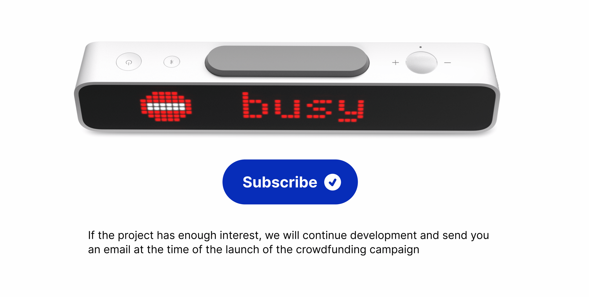 So I decided to design a status bar that would replace a Pomodoro kitchen timer and, at the same time, show others that I am busy and when I will be available. It was essential to make the status bar usage as straightforward as possible. I need only one second to press the button to light up the BUSY status with a countdown. I plan to make the firmware and API completely open source so that everyone can add their integrations to the device, such as plugins for time trackers.