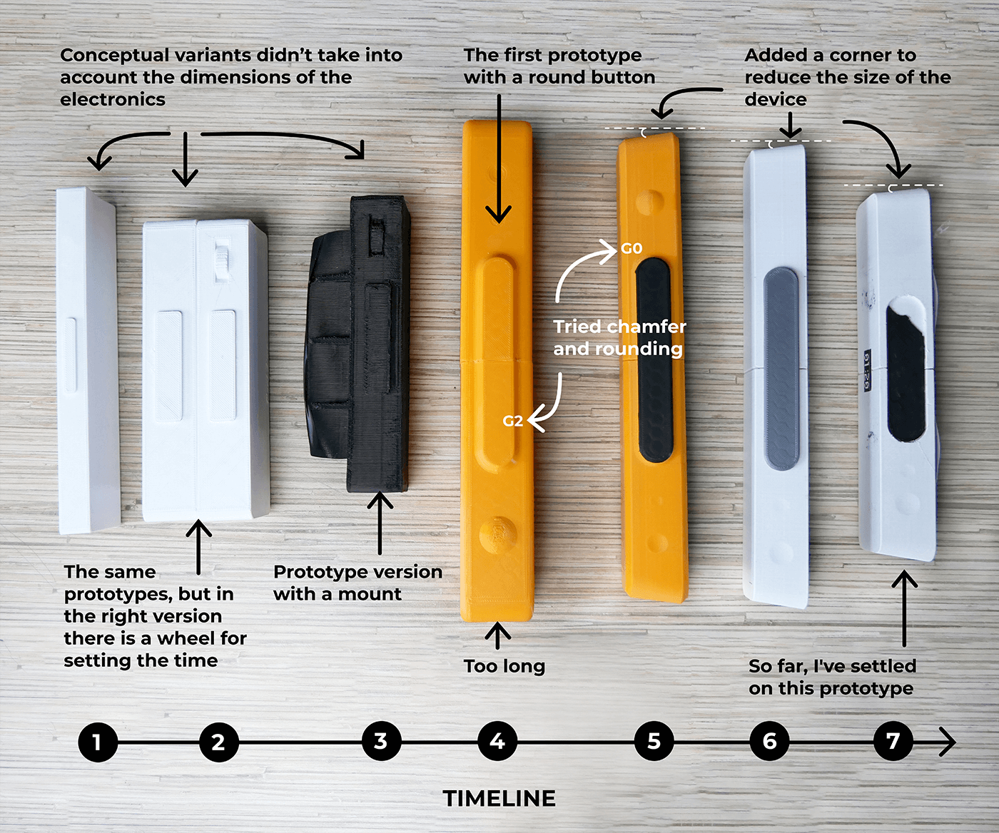 We are still experimenting with the size and shape of the status bar. The first prototypes were smaller and thinner because they did not consider the electronics and the battery. The size of the newer variants is based on the electronics requirements and overall stability on flat surfaces.