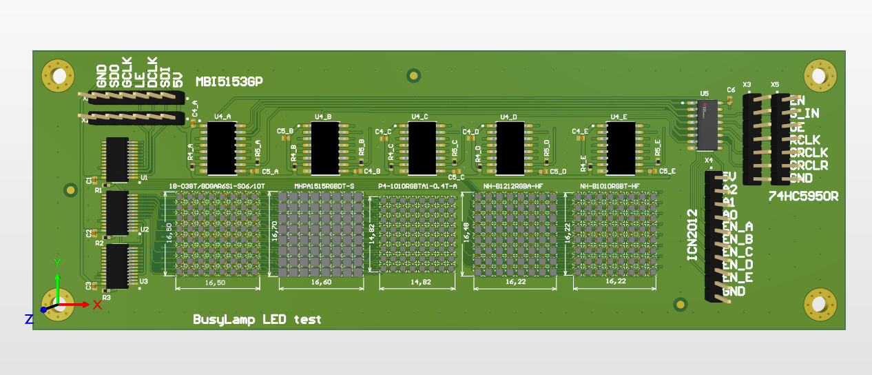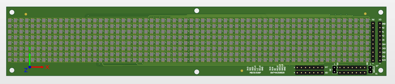 Now we are considering five different types of diodes with sizes from 1 to 1.6 mm. We plan to make test matrices of 8x8 pixels with different diodes on one board to check the brightness and choose the final version. At the time of writing, these test modules are still in production.