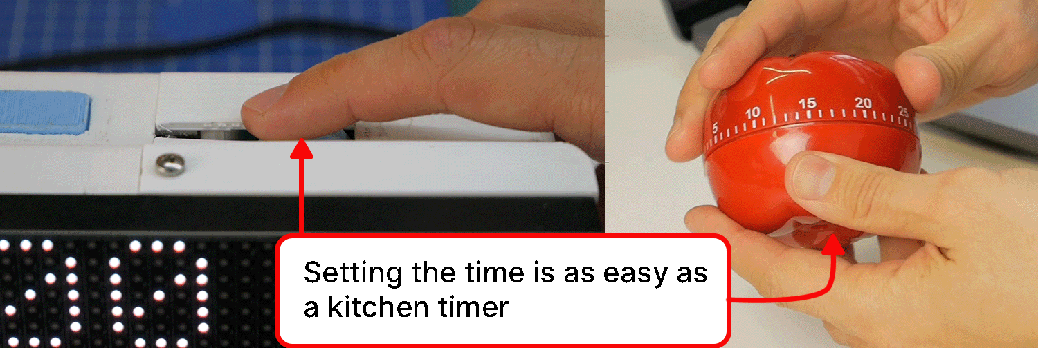 I wanted a mechanical encoder (a wheel) to set the time because, in my opinion, the buttons are not so satisfying to press. Sometimes I change the interval time and want to keep the same tactile feel as a kitchen timer.